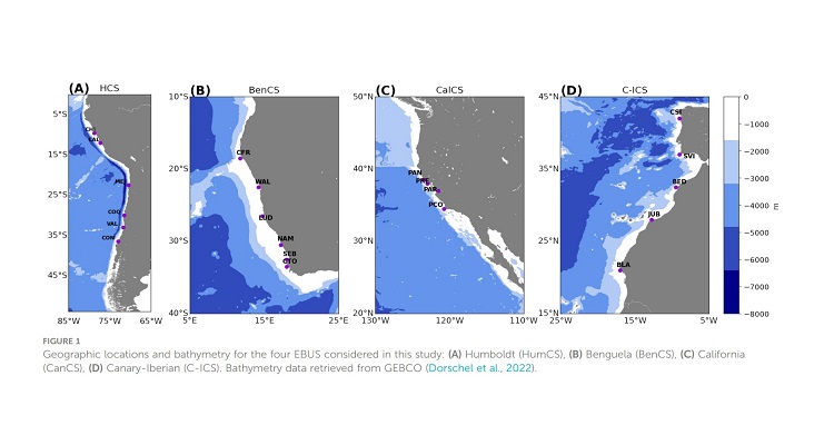 Los sistemas de surgencia de borde oriental (EBUS, por sus siglas en inglés), son áreas del océano donde aguas ricas en nutrientes ascienden hasta la superficie por acción del viento. Estas albergan ecosistemas marinos muy productivos y beneficiosos para los países circundantes, representando hasta el 20% de las capturas pesqueras globales. Comprender los efectos del calentamiento global sobre los EBUS es muy importante para el bienestar de las comunidades que habitan dichas regiones, sin embargo, no hay consenso al respecto debido a factores como variabilidad natural significativa, incertidumbre en modelos climáticos y limitadas observaciones a largo plazo. Para abordar estos desafíos, un estudio utilizó inteligencia artificial, tecnología en la que nuestro país lidera dentro de Latinoamérica (Índice Latinoamericano de Inteligencia Artificial, 2024). Específicamente, una herramienta de Aprendizaje Automatizado (Machine learning, en inglés) que permitió, a partir de datos oceanográficos y atmosféricos, estudiar cambios a lo largo de casi tres décadas en los principales sistemas de surgencia del mundo.