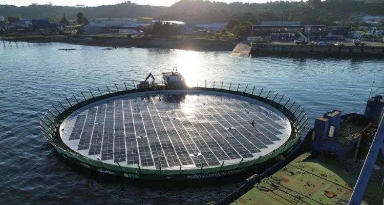 La primera jaula de cultivo flotante con paneles solares en Chile, instalada por Mowi en su centro Huar Norte, está próxima a entrar en operaciones. El hito representa un paso decisivo hacia una salmonicultura con menor huella ambiental y fue desarrollado junto a la compañía noruega AKVA group, que entregó la infraestructura de las jaulas e integración solar, y los proveedores tecnológicos Alotta Energy y Fjord Maritime.