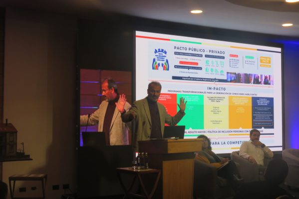 En el primer panel titulado «Adaptación del sector público al Cambio Climático» participaron: Patricio Vallespín, Gobernador Regional de Los Lagos; María Julia Reyna, Directora Ejecutiva de ICLEI Argentina; Gabriel Pérez; Director Regional Corfo Los Lagos.