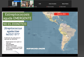 La tercera presentación, “Experiencia exitosa de cooperación interinstitucional con aproximación de Una Salud en el manejo de la estreptococosis en tilapia en Colombia” estuvo a cargo del Directora Ejecutiva y Científica de Corpavet, de Colombia, Dra. Paola Barato.