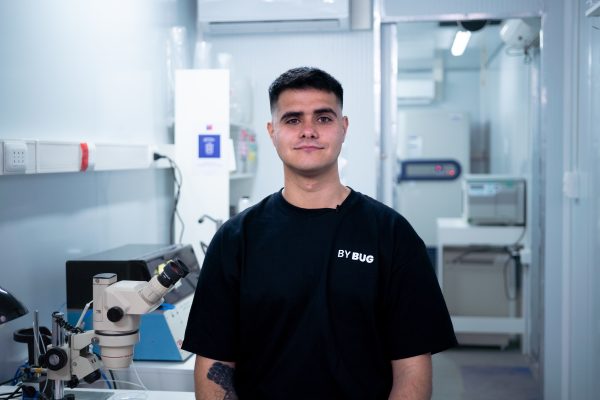 En específico, la startup trabaja con larvas de mosca soldado negro (Hermetia illucens), aprovechando sus capacidades biológicas para producir proteínas de interés funcional. A diferencia de otros modelos asociados al uso de insectos como ingrediente nutricional, la propuesta de la empresa se enfoca en el desarrollo de proteínas con acción específica, pensadas para ser incorporadas en bajas dosis dentro de dietas animales, con un objetivo sanitario más que alimentario.