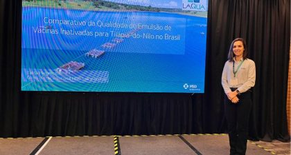 Durante LACQUA 2025 en Puerto Varas, la investigadora Talita Morgenstern expuso los resultados de dos estudios sobre vacunas que mejoran la supervivencia y salud de la tilapia.