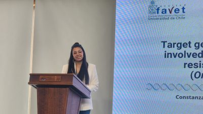 Por su parte, Constanza Urzúa, asistente de investigación del Laboratorio de Genómica Acuícola de Favet, expuso un trabajo enfocado en resistencia a SRS en salmón coho. “Fue una validación del QTL que se ha encontrado previamente en el cromosoma 21 de salmón coho, asociado a resistencia al síndrome rickettsial del salmón”, señaló.