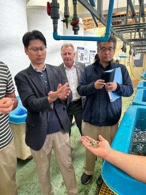 “Posteriormente, continuamos la visita a las instalaciones del Centro Costero de Acuicultura e Investigaciones Marinas donado íntegramente por el Gobierno de Japón, tras las gestiones desarrolladas por el Dr. Akaboshi y los primeros académicos de nuestro departamento de acuicultura”, explica el director del Departamento de Acuicultura de la UCN Gonzalo Álvarez Vergara.