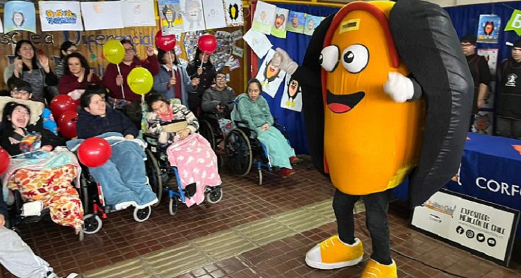 La jornada organizada por el Programa Estratégico Regional (PER) para el desarrollo de la Industria de la Mitilicultura, operado por Corfo Los Lagos, llegó junto a su personaje “Don Chori” para hacer concursos, bailes y selfies con los 150 niñas, niños y jóvenes con capacidades especiales que tiene el establecimiento municipal, único de su tipo que concentra en su mayoría a estudiantes de sectores rurales.
