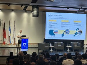 La jornada del NetZero Salmon Summit comenzó con palabras de agradecimiento y bienvenida por parte del Gobernador Regional de Los Lagos, Patricio Vallespin; seguido del director de la sede Puerto Montt de Duoc UC, Gonzalo Siade; y el CEO de Luxmeter Energy, Claudio Steiner, para luego dar paso a la exposición «Propulsión eléctrica en el mar: El camino hacia una industria marítima verde» en voz de Mads Roland, Business Development Manager de Evoy, quien abordó los avances de la empresa en tecnología de propulsión eléctrica y su impacto potencial en la reducción de emisiones en la industria marítima, particularmente en el seguimiento de proyectos relacionados al contexto acuícola-marítimo mundial.