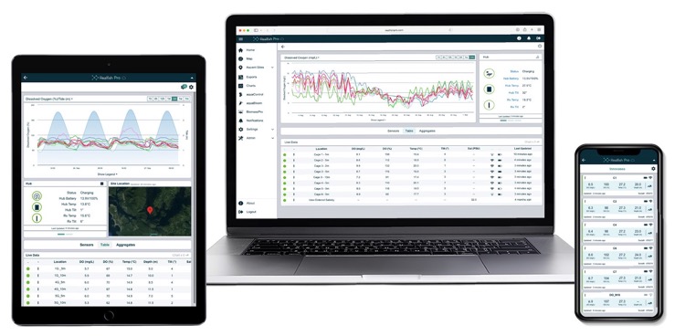 La tecnología de Innovasea ofrece información en tiempo real sobre parámetros ambientales como los niveles de oxígeno disuelto, salinidad y temperatura, en una plataforma central basada en la nube: Realfish Pro de Innovasea. En el Panel de Monitoreo Ambiental de Realfish Pro, los operadores pueden rastrear rápidamente la calidad del agua en múltiples sitios y recibir alertas instantáneas si las condiciones se deterioran. Pueden utilizar estos datos para optimizar la alimentación y proteger a los peces, incluso cuando no están en el lugar.
