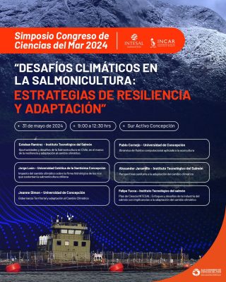 Ya quedan pocos días para que cientos de científicos, expertos, autoridades y representantes del sector privado se reúnan en una nueva edición del “XLIII Congreso de Ciencias del Mar 2024” en Concepción. En el encuentro, que se llevará a cabo entre el 27 y el 31 de mayo, el Instituto Tecnológico del Salmón (Intesal) realizará el simposio “Desafíos climáticos en la Salmonicultura: Estrategias de resiliencia y adaptación”.