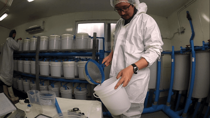 “Mantenemos un programa genético en base a la formación y evaluación de familias en cada desove para los núcleos reproductivos. Los principales focos del programa genético apuntan a lograr mejoras en productividad (conversión de alimento, rendimiento en planta de proceso), crecimiento, calidad de la carne y desarrollo de genómica para resistencia a SRS y Caligidosis entre otras enfermedades”, indica el documento de AquaChile en su apartado de reproducción y genética.