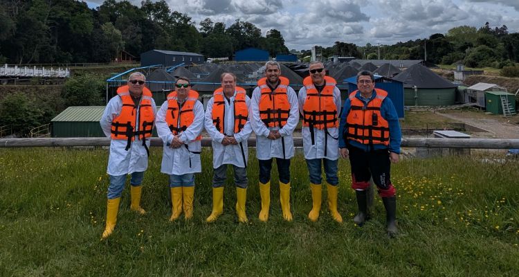 Posteriormente, con la articulación del gerente del PTEC-INVA, Dr. Daniel Nieto Díaz-Muñoz, la comitiva recorrió la Piscicultura Los Tambores de Salmones Antártica, ubicada en la comuna de La Unión (región de Los Ríos). Allí fueron recibidos por el subgerente de Agua Dulce, Gustavo Araya; el jefe de Área para Los Ríos, Rodrigo Domínguez; y el primer asistente, Guido Barril.