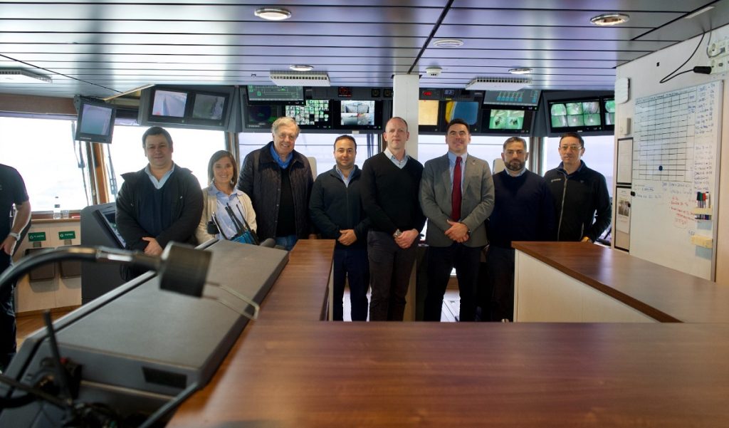 Posteriormente, la comitiva se trasladó a las instalaciones de GripShip, donde fueron recibidos por Jorge Maluenda, Country Manager, y equipos. En este recorrido, pudieron conocer en detalle el funcionamiento de los wellboats, embarcaciones especializadas en el transporte de peces vivos, observando los procesos de ósmosis, sistemas de tratamiento de aguas y las tecnologías implementadas para el control del caligus, entre otros aspectos operacionales.
