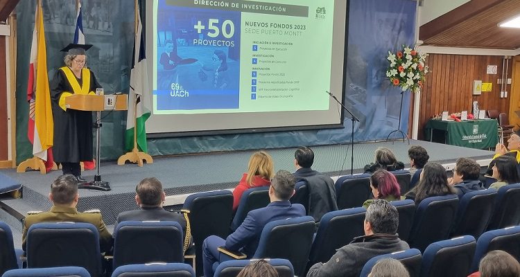 El trabajo desarrollado en las diversas áreas de gestión de la Sede Puerto Montt de la Universidad Austral de Chile fueron destacados por la Vicerrectora, Dra. Marcela Astorga Opazo, en la ceremonia de conmemoración de los 69 años de vida de la UACh y 34 de presencia activa en la capital de la Región de Los Lagos, realizada este viernes 8 de septiembre, en el Aula Magna del Campus Pelluco.