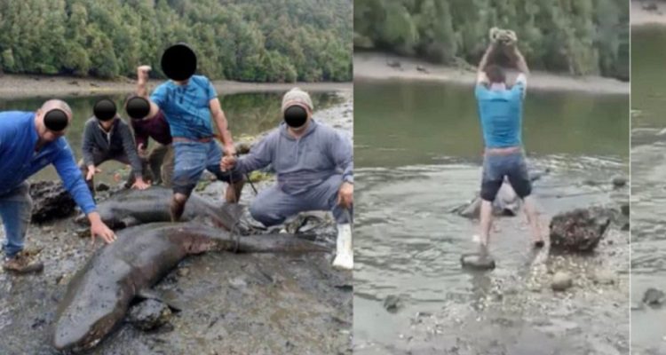 La Dirección Regional de Sernapesca Los Lagos presentó una denuncia por maltrato animal ante la Fiscalía regional tras conocerse las imágenes donde una persona golpea con una gran piedra a un par de tiburones que habían sido capturados.