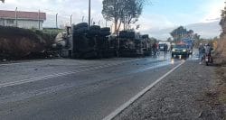 Un camión que transportaba salmones volcó en Ancud, interrumpiendo temporalmente la Ruta 5 Sur. El conductor resultó herido.