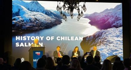 Durante la presentación, el presidente de SalmonChile dio a conocer la importancia que tiene el salmón en lo que será la alimentación del futuro, por ser la proteína con la huella de carbono más baja en su producción.
