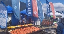 El gremio realizó un cancato comunitario, en donde se entregaron más de 500 porciones de salmón gratuitas para los asistentes, preparadas por el colectivo de cocineros de Puerto Aysén “Entre Brasas y Ríos”.
