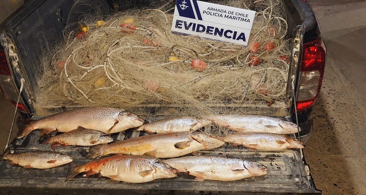 Sernapesca y la Autoridad Marítima retiraron redes ilegales en laguna Sofía, incautando 200 metros de redes y salmones silvestres atrapados.