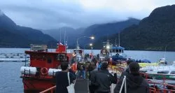 Ruta del Salmón realiza visita a centro de cultivo de AquaChile con turistas, vecinos y comunidades en Puerto Montt.