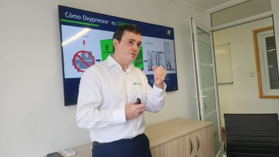 Uno de los ejes centrales de la propuesta de valor de Poseidon es su compresor Flowpressor y el concepto de flujo variable, que reemplaza el esquema tradicional de un gran generador diésel operando a máxima capacidad. Cerda describió el contraste con las soluciones convencionales. “Todos los equipos que hoy generan oxígeno para los peces operan con un generador de gran tamaño instalado en los pontones. En nuestro caso, ese generador no existe y el Flowpressor se convierte en el corazón del sistema, lo que nos permite reducir de manera significativa el consumo de combustible y las emisiones asociadas”, dijo el ejecutivo.