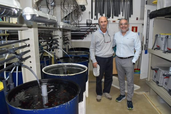 La gira académica también rindió frutos en materia de cooperación internacional. El Dr. Gallardo fue recibido por el Dr. Javier Benavente González, Decano de la Facultad de Ciencias del Mar y Ambientales de la Universidad de Cádiz. En una amena visita, ambos académicos conversaron sobre las potencialidades de movilidad estudiantil en acuicultura, abriendo puertas para el intercambio de estudiantes chilenos en España.